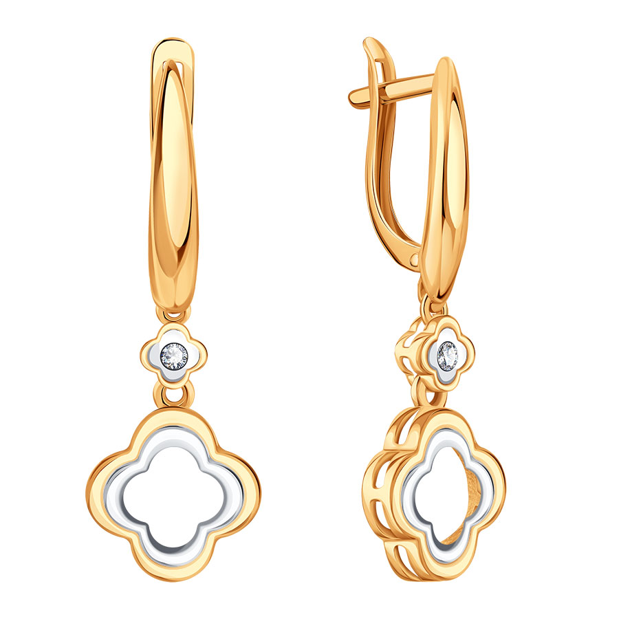 Золотые длинные серьги с фианитом KARATOV Т14202Г330