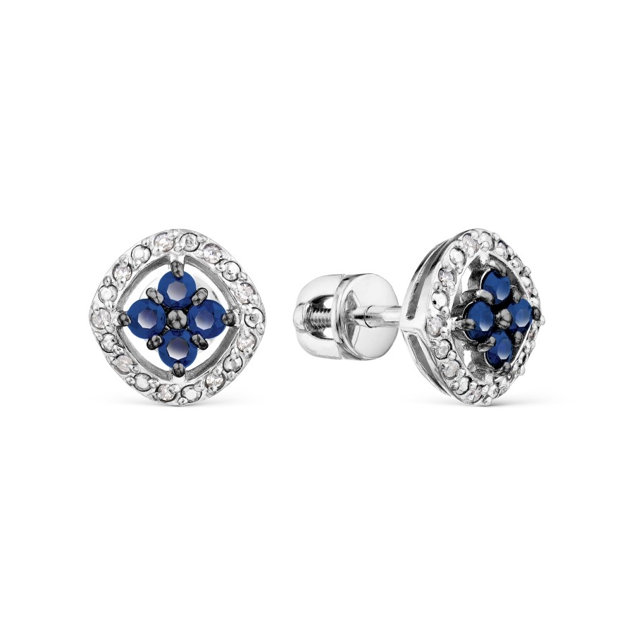 Серьги пусеты-гвоздики из белого золота с бриллиантом и сапфиром KARATOV Т30102Б263