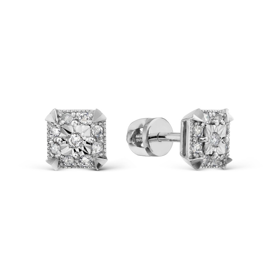 Серьги пусеты-гвоздики из белого золота с бриллиантом KARATOV Т305629764