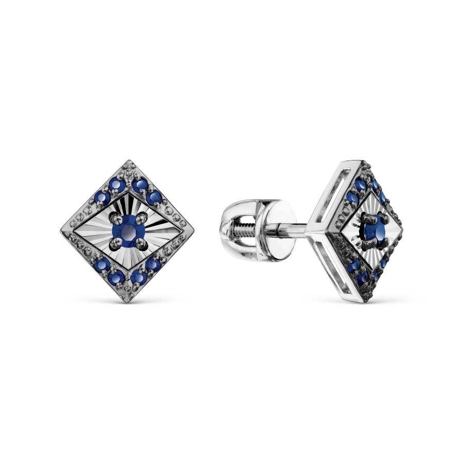 Серьги пусеты-гвоздики из белого золота с сапфиром KARATOV Т30562Б235