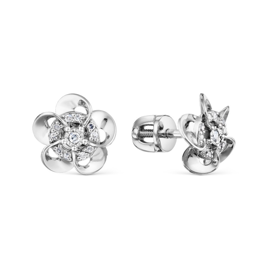 Серьги пусеты-гвоздики из белого золота с бриллиантом KARATOV Т30562Б431