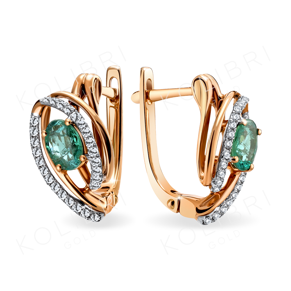 Золотые серьги с бриллиантом и изумрудом АТОЛЛ US34160